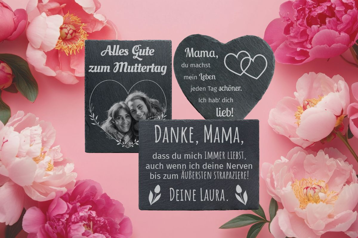 Echte Schiefer-Unikate, mit Liebe graviert: Ob mit Foto, Namen oder einem besonderen Text – hier findest du dein persönliches Herzensgeschenk für Mutti. Eine bleibende Erinnerung, die von Herzen kommt – zum Muttertag oder einfach nur so.