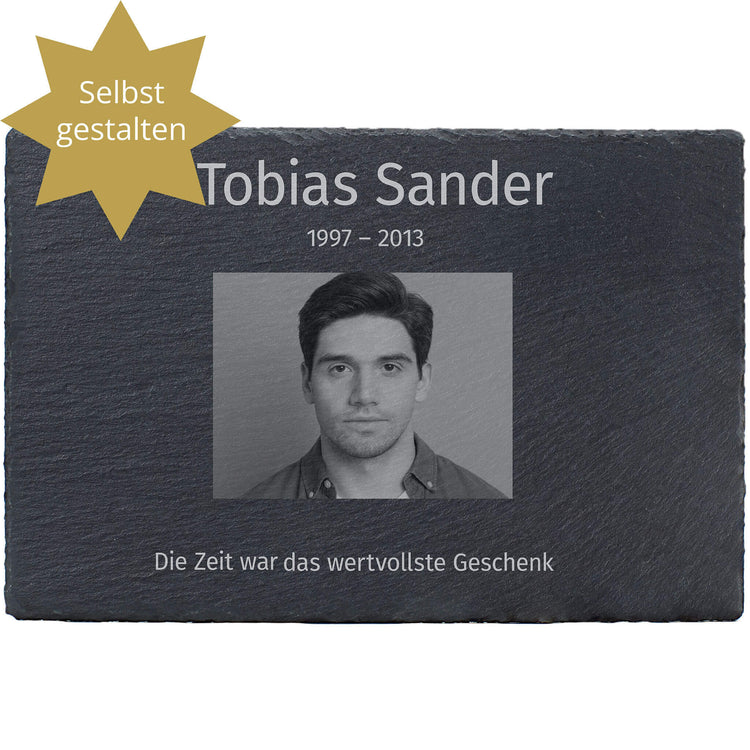 Personalisierte rechteckige Schiefertafel im Querformat – einfach online gestalten